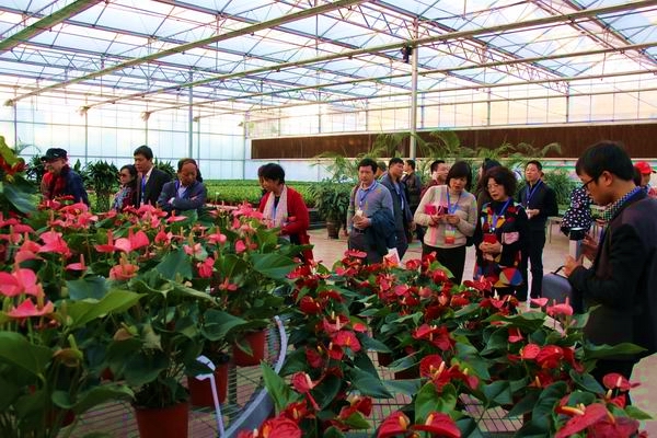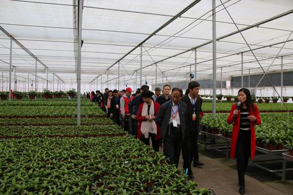 参加2015首届四川省养生旅游节的嘉宾们参观西区庄上花卉基地