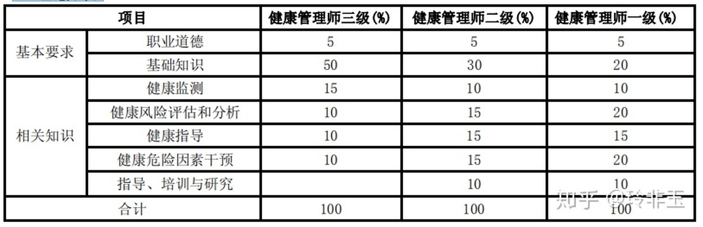分为理论知识考试和专业能力考核两部分。理论知识考试和专业能力考核均采用闭卷笔试方式。理论知识考试和专业能力考核均采用百分制,两部分成绩皆达 60 分及以上者为合格。健康管理师二级和健康管理师一级还须进行综合评审。