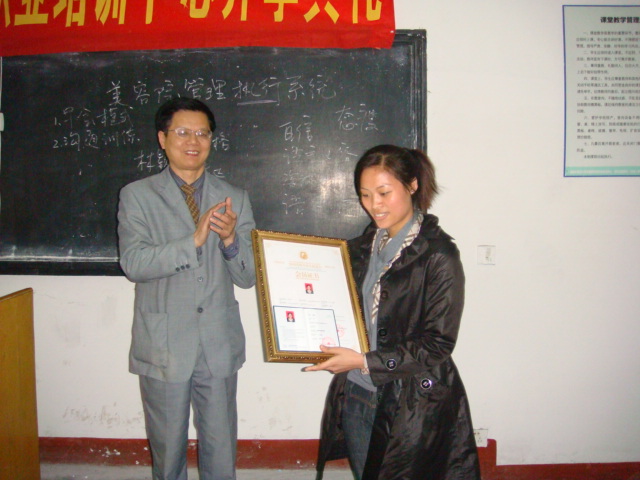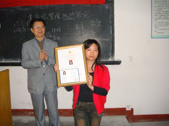 2010年4月在成都中医药大学十二桥校区一教由四川省科学养生促进会会长谭建三、执行会长桑子冰、秘书长何晓东向成都中医药大学天康优秀学员颁发个人会员证书。